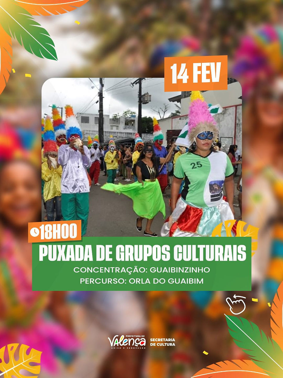 A Prefeitura de Valença, através da Secretaria de Cultura, divulgou nesta quinta-feira (12), a grade oficial do Carnaval Cultural 2026, que traz o tema: "Tradição, Identidade e Cores". A programação descentralizada começa nesta sexta feira (13) no bairro do Tento, com a Puxada do Boi Ventania a partir das 16 horas, e segue durante o final de semana e feriadão de Carnaval com atrações concentradas na Praia de Guaibim e no Povoado do Bonfim.